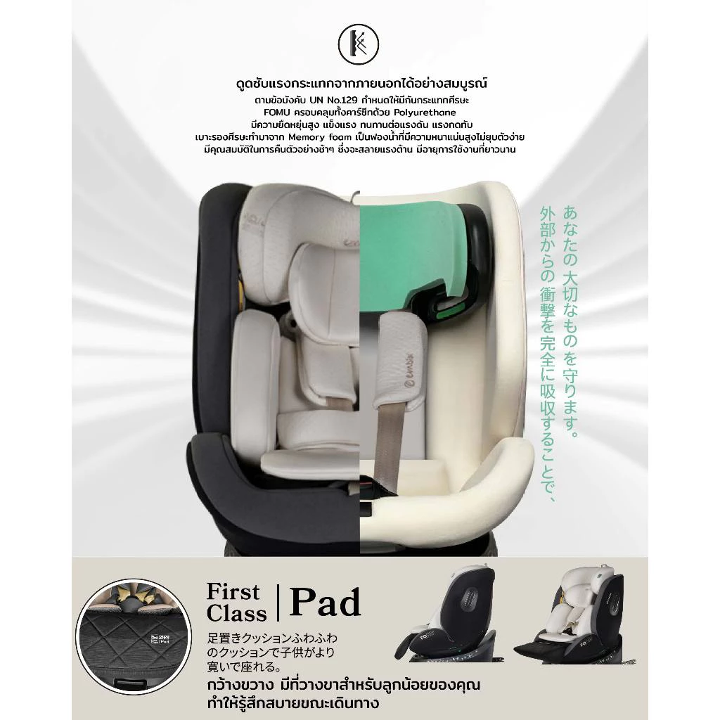 นับเป็นคาร์ซีทที่ออกแบบให้ใช้งานได้ยาวนาน ตั้งแต่ เด็กแรกเกิด (สูง 40 ซม.) ถึงประมาณ 12 ปี (สูง 150 ซม.) ซึ่งช่วยลดความจำเป็นในการเปลี่ยนเบาะตามช่วงอายุหรือกลุ่มน้ำหนัก. ดีไซน์เน้นการ ใช้งานสะดวกโดยผู้ปกครอง เมื่อหมุนสลับตำแหน่งและปรับเอนนอนได้ง่าย ให้ความรู้สึกนุ่มสบายพร้อมกับโครงสร้างเน้นความปลอดภัยระดับสูง. รองรับทุกขั้นตอนการเจริญเติบโตของลูกน้อยด้วยระบบปรับสูงของพนักพิงศีรษะ 15 ระดับ (60–81 ซม.), หลักเข็มขัดนิรภัย 3 จุด, และที่รองขาแบบปรับได้สูงสุด 21 ระดับ รวมถึงซับแรงกระแทกขณะเคลื่อนตัวหรือหยุดฉุกเฉิน. เบาะหุ้มผ้าสามารถถอดออกซักทำความสะอาดได้ง่าย – เหมาะกับหลายช่วงวัย และดูแลความสะอาดได้สะดวกยิ่งขึ้น.